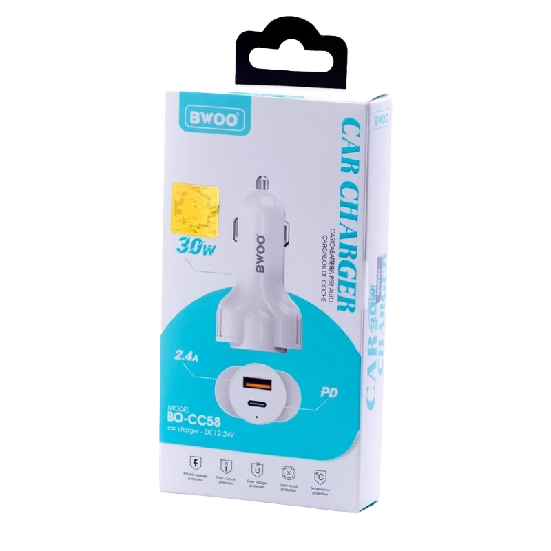 شارژر فندکی بوو (Bwoo) مدل BO-CC58 – ( یک پورت USB و یک پورت Type C)