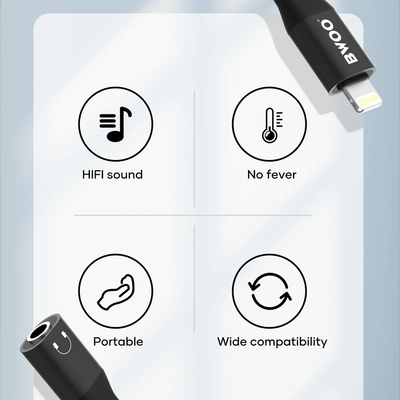 شرکت اپل از زمان انتشار آیفون 7 و آیفون 7 پلاس تصمیم گرفت جک 3.5 میلی متری صدا را از محصولات خود حذف کند و امروزه برای دیگر شرکت ها این کار درحال تبدیل شدن به یک استاندارد است. اما بسیاری از هندزفری و هدفون ها و همچنین کابل های انتقال صدای AUX هنوز از رابط 3.5 میلی متری استفاده می کنند. شرکت bwoo چاره ای برای کسانی که می خواهند از این رابط استفاده کنند اندیشیده و یک تبدیل برای آن تولید کرده است. مبدل لایتنینگ به AUX بوو اورجینال مناسب برای کسانی است که هندزفری با رابط 3.5 میلی متری داشته و می خواهند آن را به موبایل آیفون یا تبلت آیپد خود که دارای پورت لایتنینگ است متصل کنند.