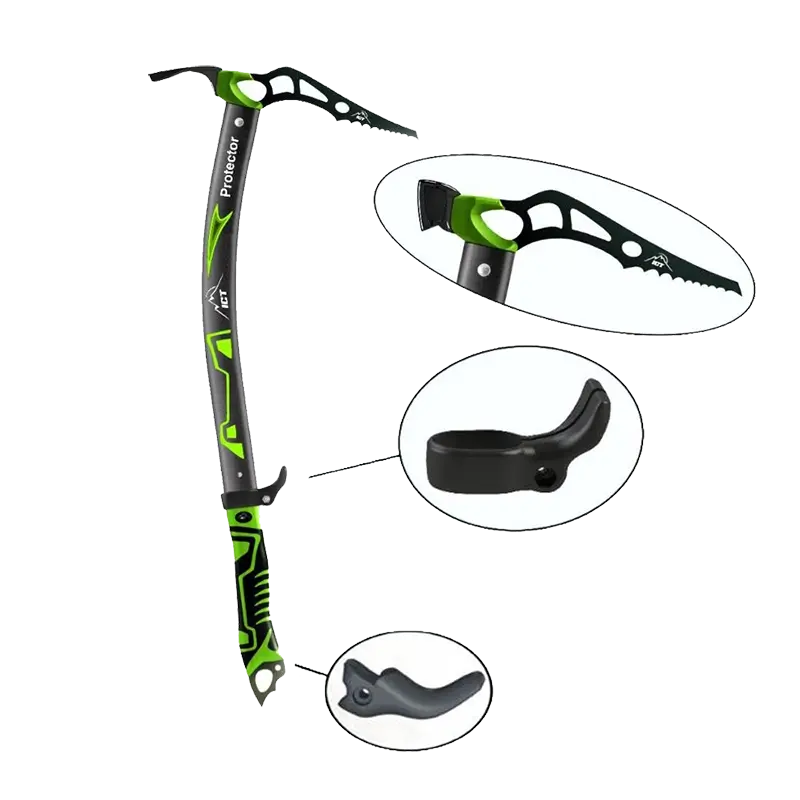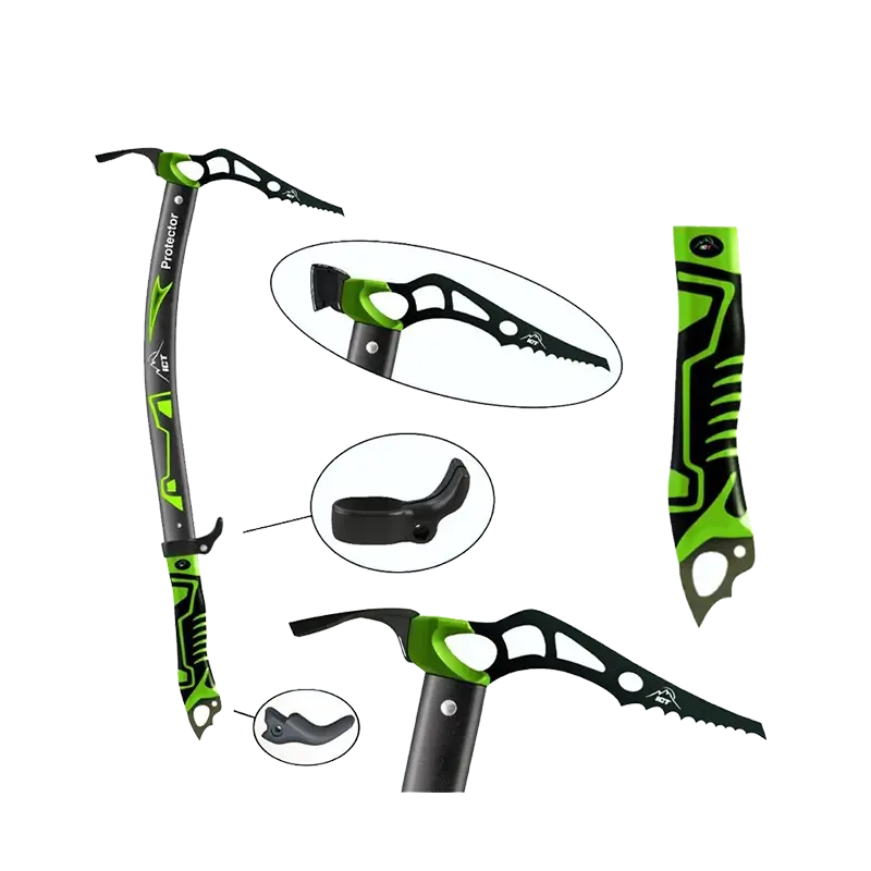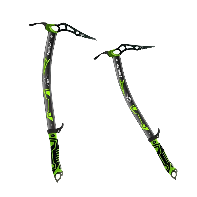 کلنگ تکنیکال ICT مدل Protector Plus نسخه ارتقایافته و فنیتر از خانواده پروتکتور است که با هدف صعودهای تخصصی و برنامههای فنی یخچالها طراحی شده است. متمایزترین ویژگی این مدل، قوس ملایم در بالای بدنه است که فضای بیشتری برای دست در زمان ضربه زدن ایجاد کرده و قدرت نفوذ تیغه در یخ را افزایش میدهد. این کلنگ با بهرهگیری از گریپ لاستیکی، تعادل بینظیری میان یک کلنگ کلاسیک و یک تبر یخ ایجاد کرده است.