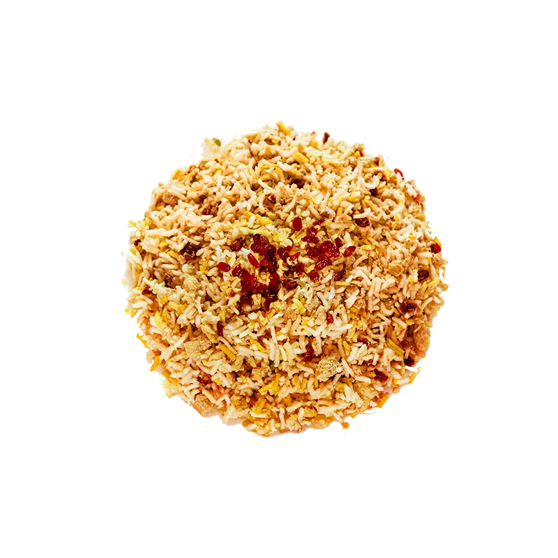 برنج ایرانی، مرغ، زرشک، زعفران |